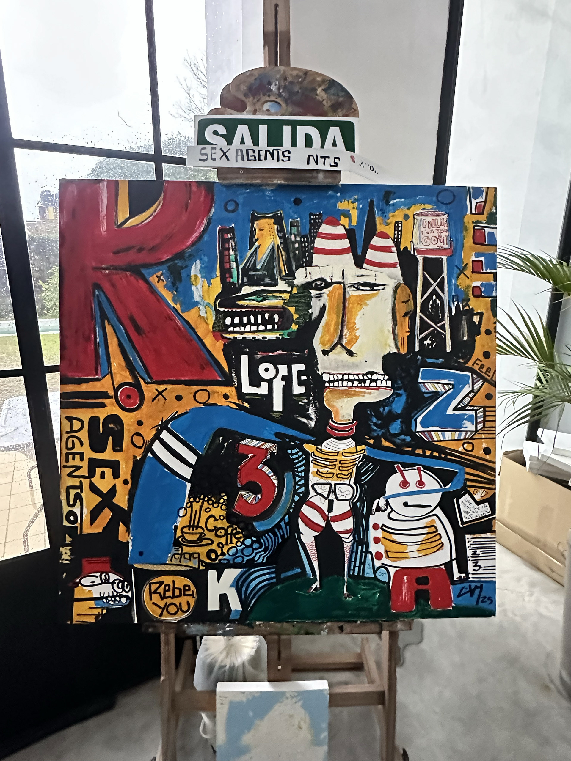 Acrylic, ink and mix media on canvas. 30x30 cm.